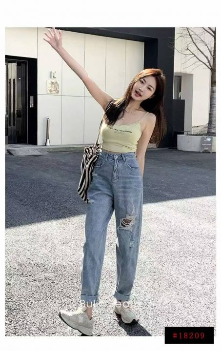 春夏季新款微胖MM破洞设计款牛仔老爹哈伦裤,独立包装...