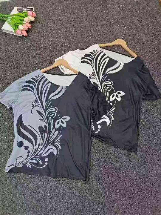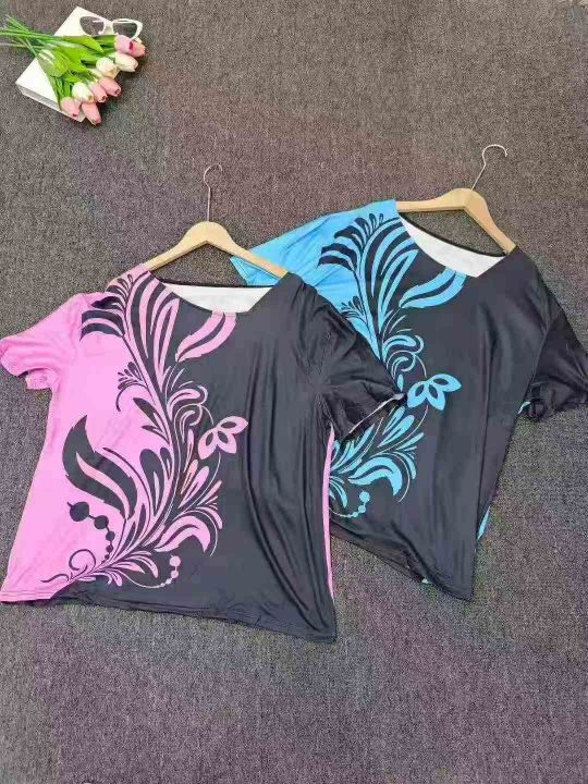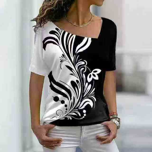 Printed Diagonal Neck Women\'s Short Sleeves印花斜领女式短袖
