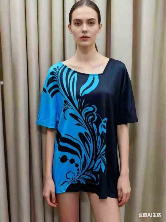Printed Diagonal Neck Women\'s Short Sleeves印花斜...
