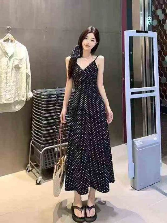 夏季新款高级感黑色波点连衣裙女宽松显瘦无袖气质法式长裙,整款单色,M-L.XL码,262件,裙长116厘米,独立包装,货品干净,7.8清,分货加1