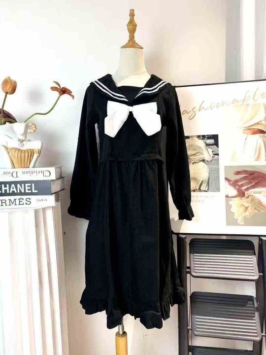 170件左右春秋新款学院风jk制服连衣裙海军风中长款连...