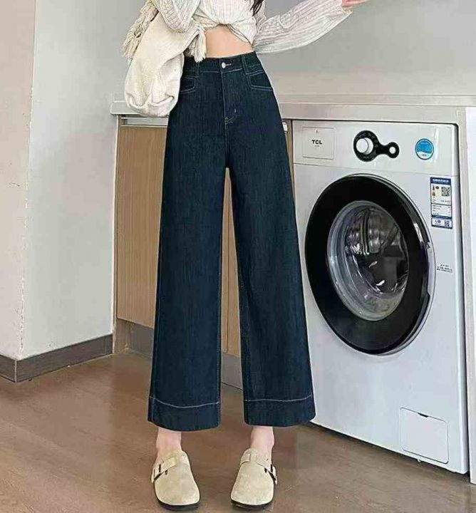 春秋新款梨形身材宽松高腰显瘦直筒阔腿9分牛仔裤,独...