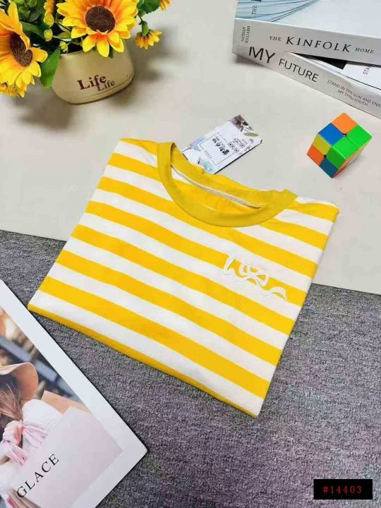 ❄️时尚减龄宽松网红款黄色条纹纯棉短袖t恤女,单款...