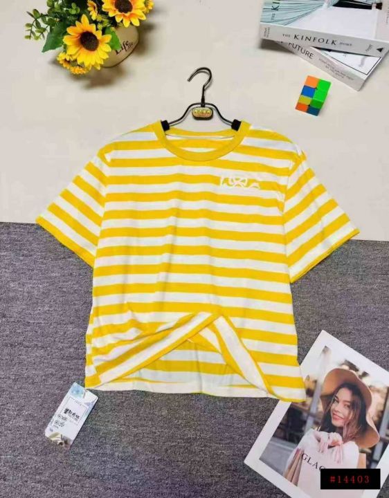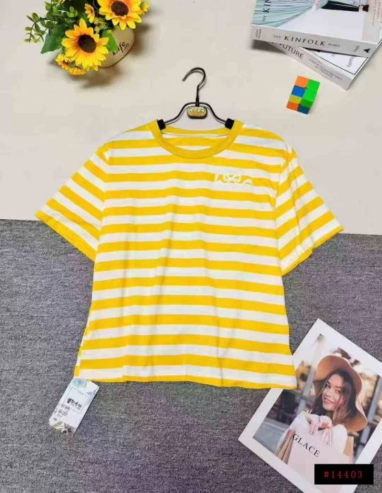 ❄️时尚减龄宽松网红款黄色条纹纯棉短袖t恤女,单款单色,品质好,有独立包装带吊牌,均码,数量280件左右,全清5.8元秒。@_@