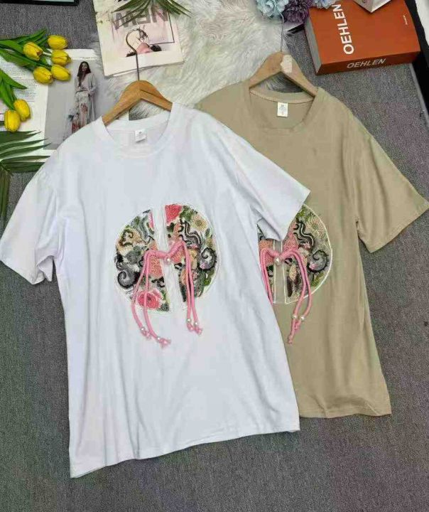 全清价8.8新中式国风刺绣宽松短袖大版气质棉T恤,独立...
