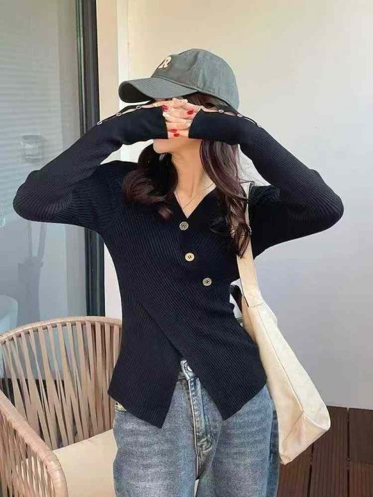 不规则v领针织衫女秋冬设计感小众毛衣开叉修身上衣潮,独立包装,550件,清7.8,分➕1
