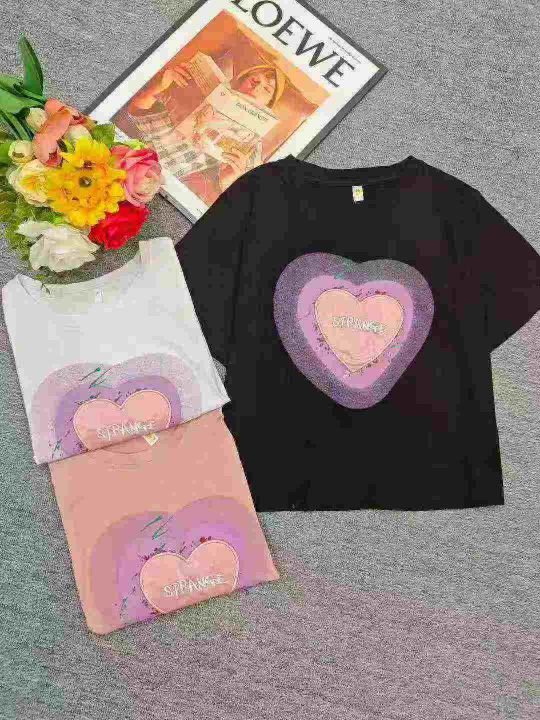 电商仓回收198件甜辣纯欲刺绣爱心纯棉辣妹短袖T恤,码数S-XL。后领包边到肩,版型质量超好,100%纯棉。独立包装,分货➕1