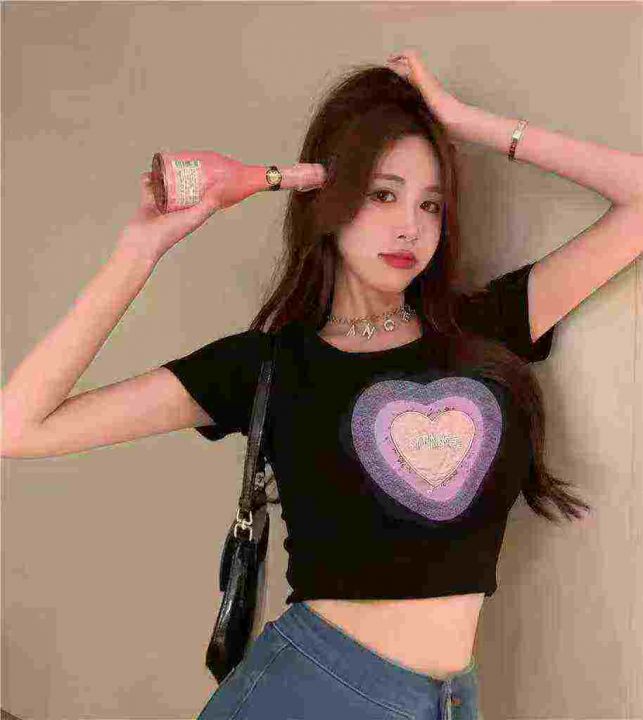 5.9清电商仓回收198件甜辣纯欲刺绣爱心纯棉辣妹短袖T...
