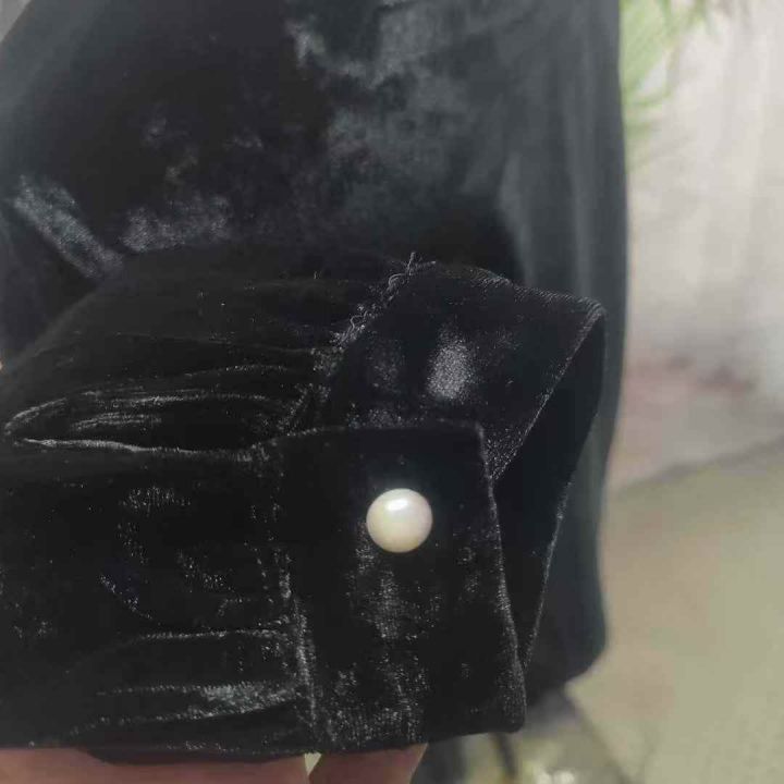 4.8元[爱心][爱心] 华丽奢侈荷叶边金丝绒衬衫上衣,...