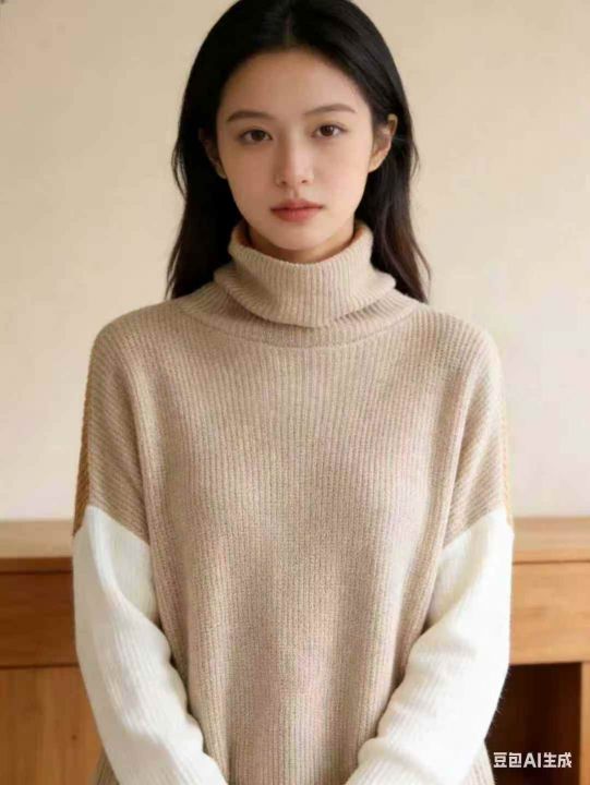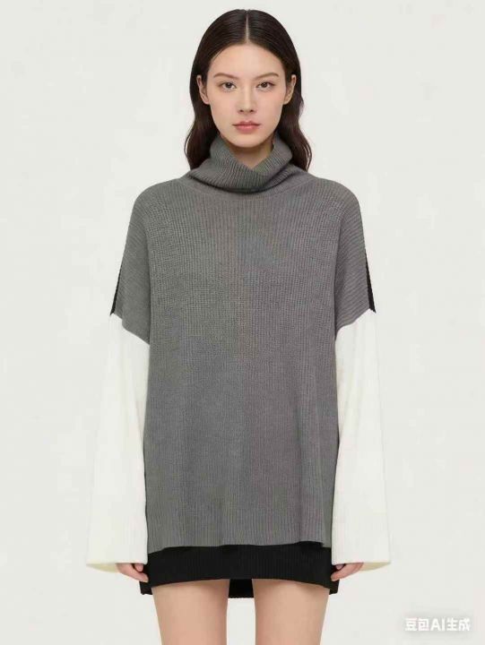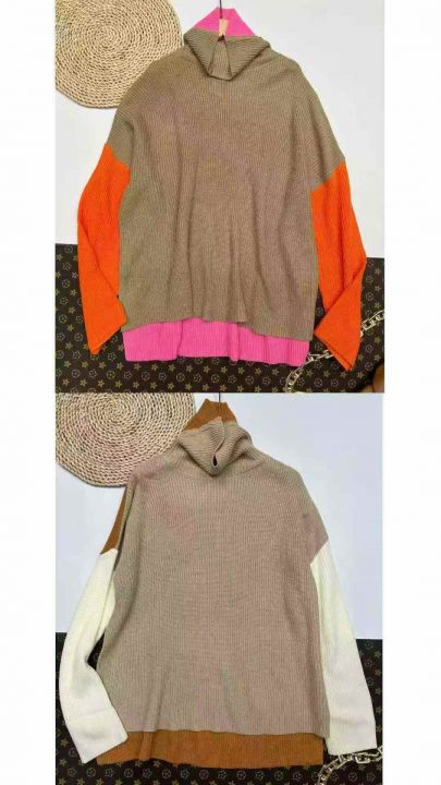 品牌大码宽松拼接毛衣,总数量1018件左右,单款多色,码数S-XXL,独立包装吊牌,分货➕1元/件,AI模特图图片仅做参考
