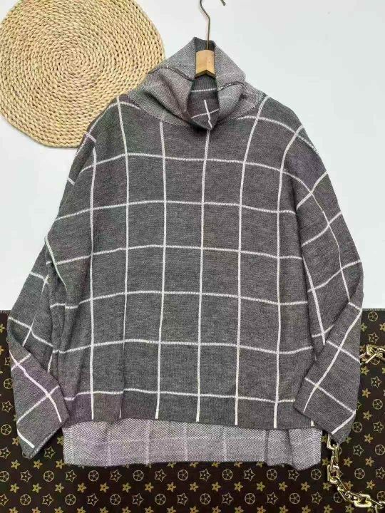 品牌大码女装毛衣,总数量632件左右,码数S-2XL,单款3色,宽松大版型,前短后长设计师款,独立包装吊牌,分货➕1元/件,AI制图仅供参考