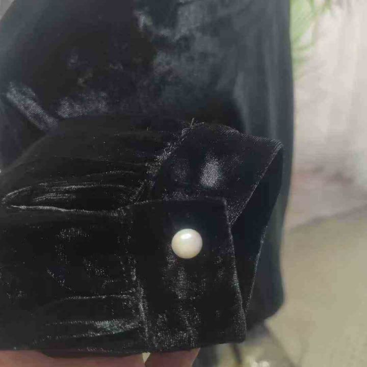 4.8元[爱心][爱心] 华丽奢侈荷叶边金丝绒衬衫上衣,...