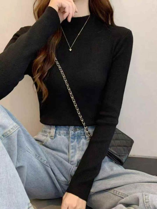 秋冬秋款净版简约百搭半高领打底外穿包芯纱套头毛衣,...