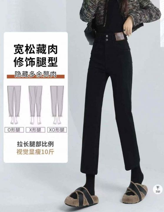 秋冬新款加绒加厚高弹力洗水棉牛仔烟管裤,独立包装带...