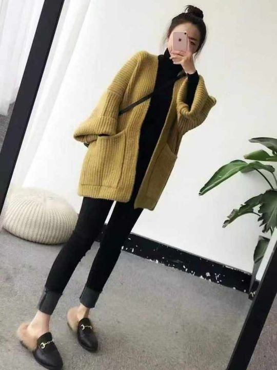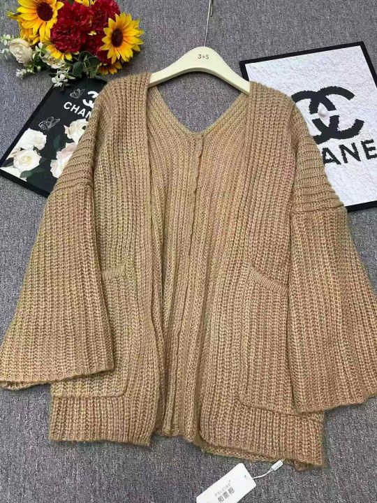 品牌原单韩系宽松净版简约粗针大口袋毛衣开衫,独立包...
