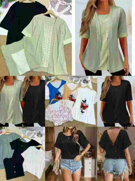 上新全清:12.8一套韩版不规则设计感短袖配背带裤套装,[爱心]175套左右,...