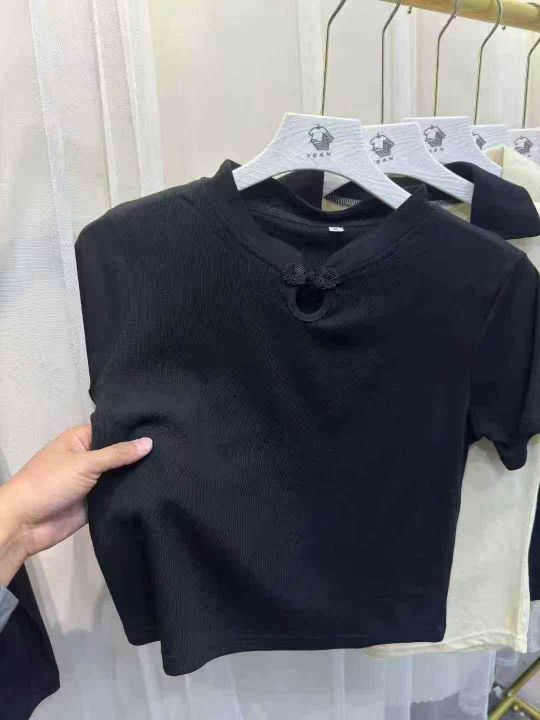 黑色短袖T恤女夏季薄款新款宽松短款大码设计感小众露背上衣,数量500左右,...