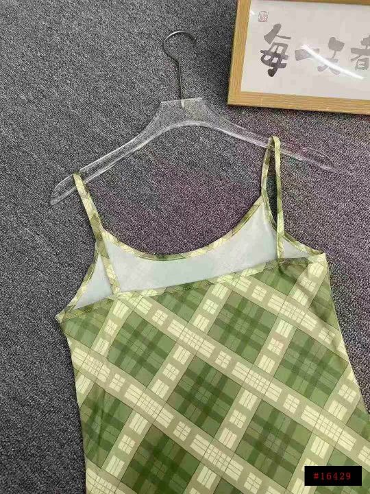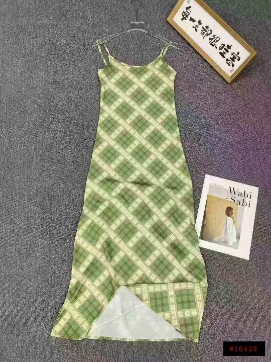 法式复古吊带连衣裙105件8.9,绿色格纹,码数1-4码(S...