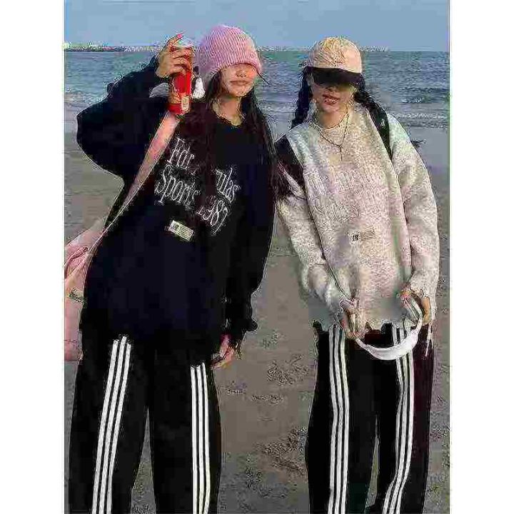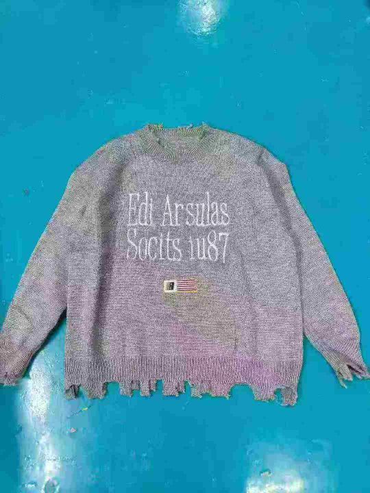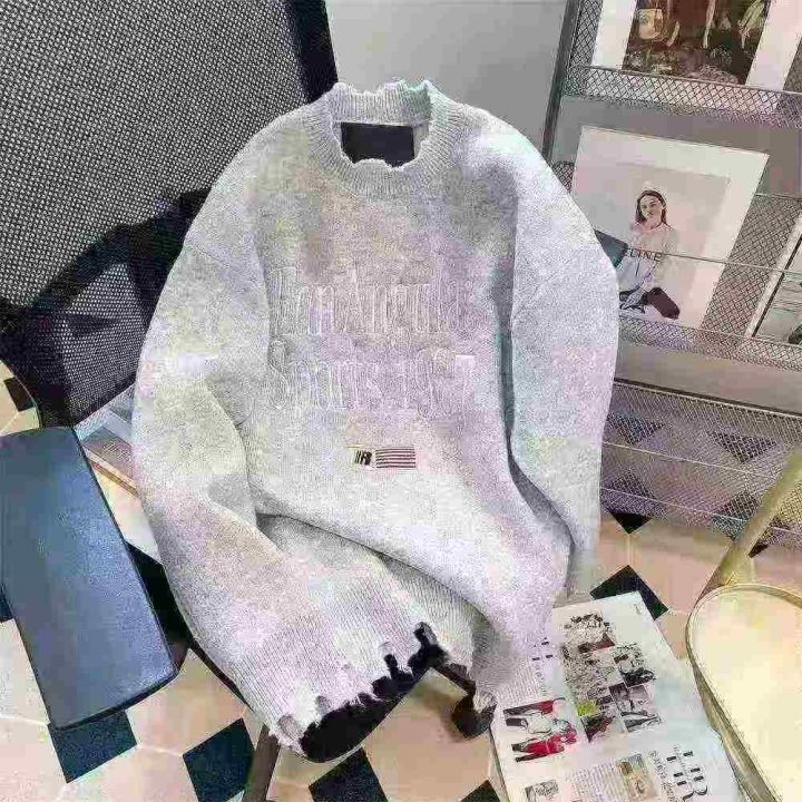 207件男女同款美式复古学院风,字母图案提花刺绣毛衣,破洞情侣ins针织衫 ,货品干净独立包装