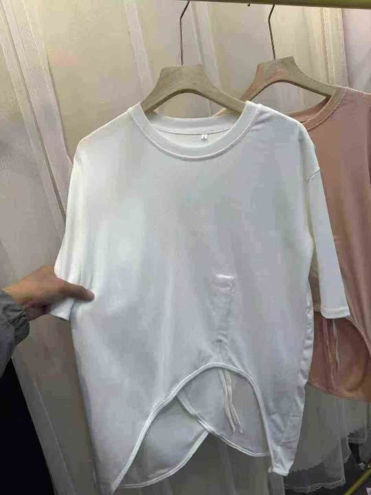 网红开衩不规则中长款中袖抽绳防晒衣t恤女夏洋气时髦防晒上衣潮,数量500左右,码数S一2XL,独立包装,全清5.8元,分货+0.5元。 货号:24862