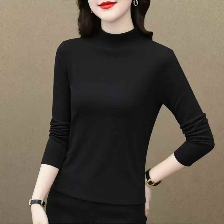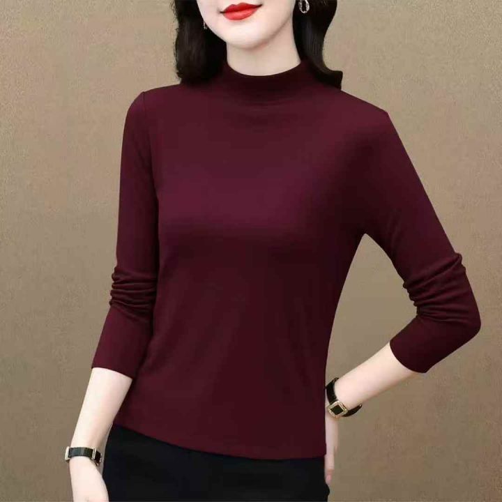 女式双面羊绒蚕丝对复加厚面料 半高领保暖打底上衣 486件 独立精致包装 面料厚实 柔软舒适弹力大 15元一件