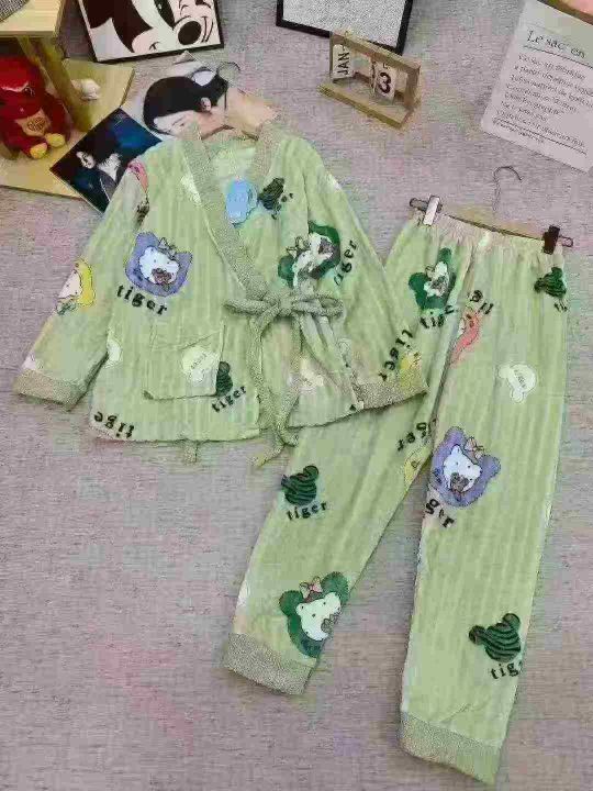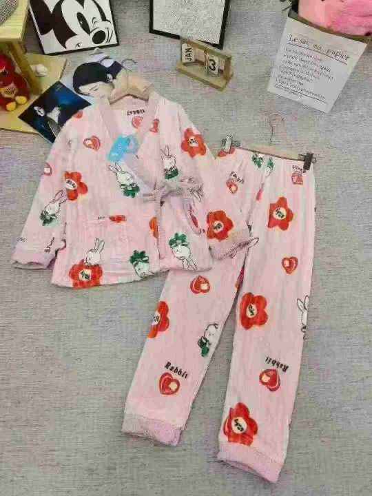 120 套左右,S-5Xl,独立包装 秋冬装法兰绒睡衣月子服套装长袖家居服保暖宽松大码甜美卡通哺乳,全清 16.8