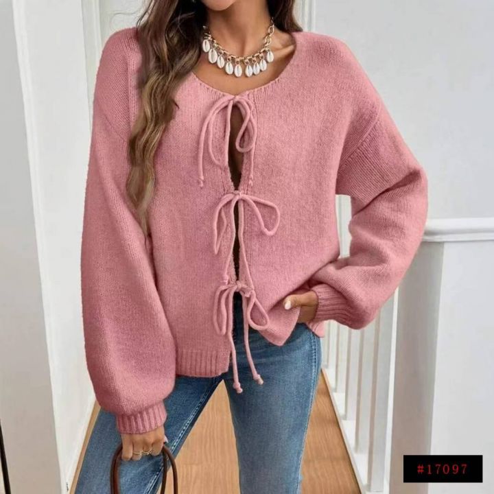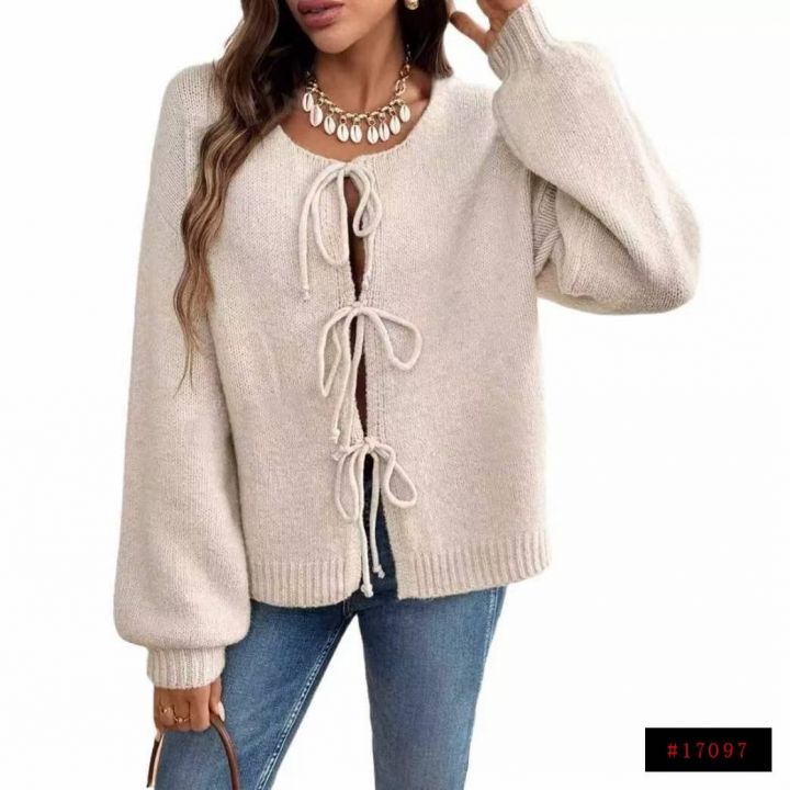 秋冬新款品牌外贸原单美式时尚百搭粗针加厚系带毛衣开衫,独立包装,码数S...