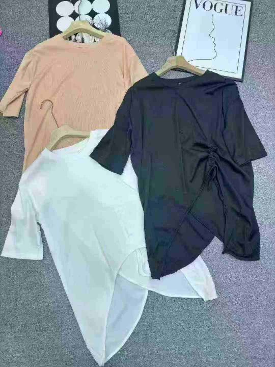 网红开衩不规则中长款中袖抽绳防晒衣t恤女夏洋气时髦防晒上衣潮,数量500左右,码数S一2XL,独立包装,全清5.8元,分货+0.5元