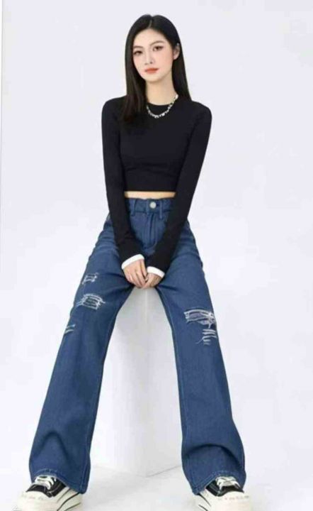 春夏季新款品牌原单宽松半松紧腰破洞设计款直筒阔腿牛仔裤,独立包装带吊牌,图片款,码数26--36码双码一首码,2366件,全清9.9元超低价秒杀!分货加一!