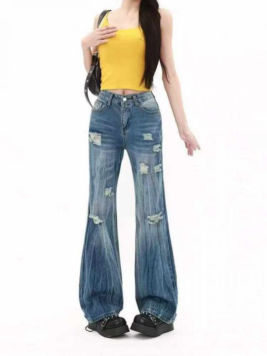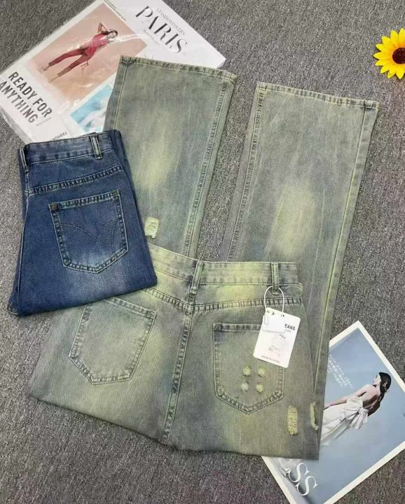 春秋新款设计款网红爆款直筒阔腿喇叭牛仔裤,独立包装...