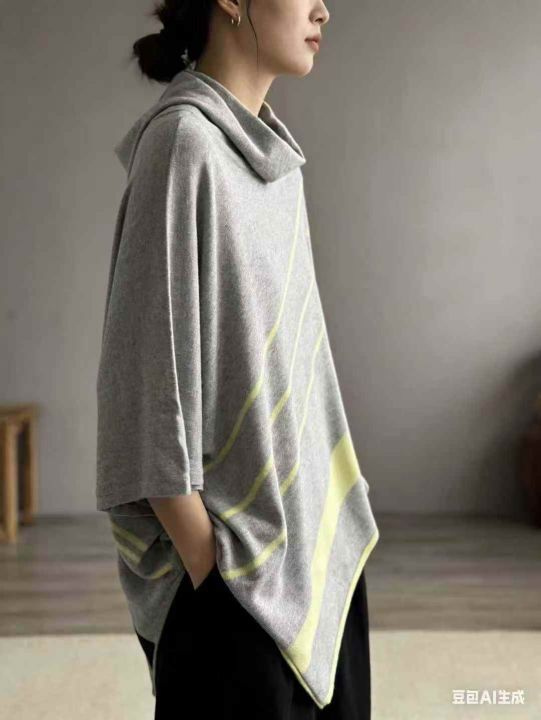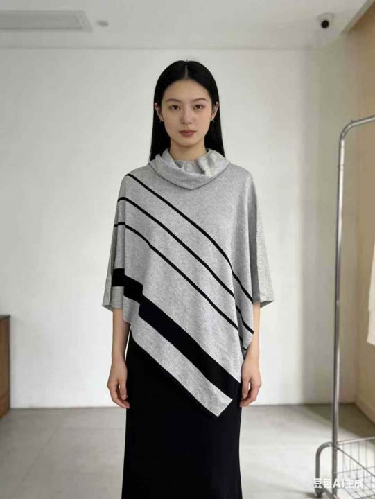 品牌女装~慵懒风斜纹针织斗篷衫,宽松版型对各种身材都很友好,面料柔软,数量60件左右,均码,独立包装吊牌