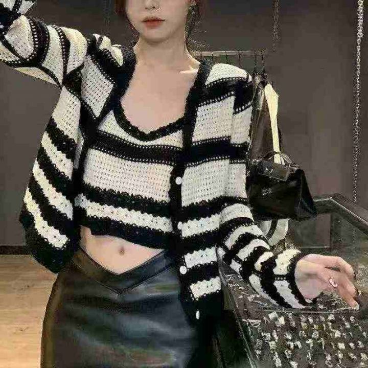 捡漏款,春季新款设计感小众法式条纹镂空针织开衫,独立包装,均码面料柔软...