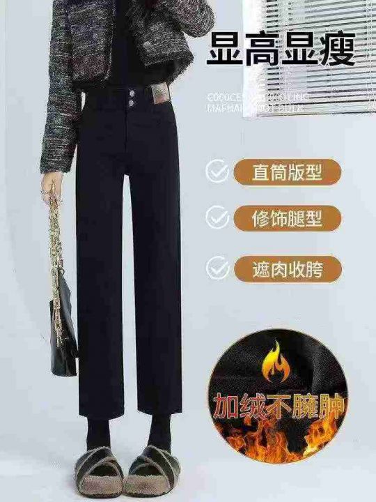 秋冬新款加绒加厚高弹力洗水棉牛仔烟管裤,独立包装带...