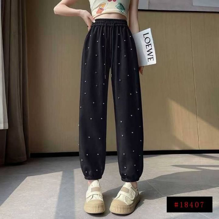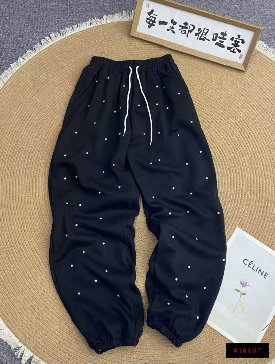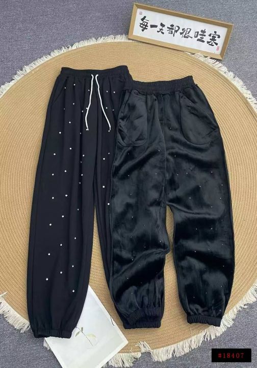 韩系重工镶钻满天星加绒束脚卫裤960件,秋冬清仓9.9,分货11.8,