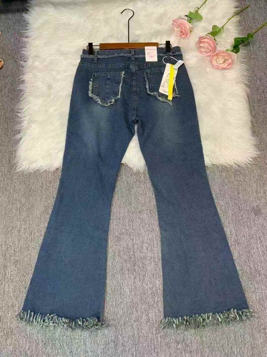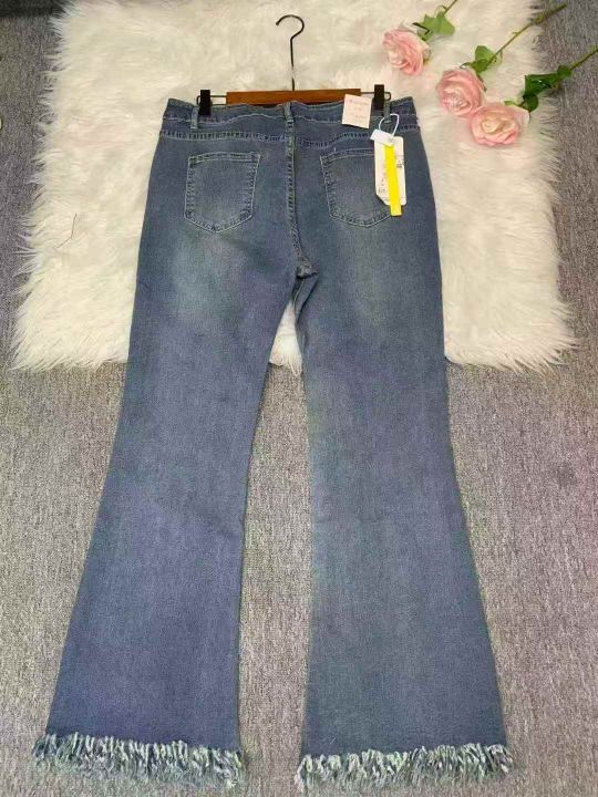 新款微喇叭流苏牛仔裤女春秋弹力修身高腰显瘦修身马蹄长裤110件,独立包装带吊牌,高弹力,尺码M~5XL大码偏多,全清福利价11.8元