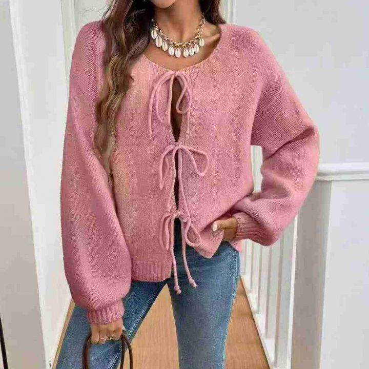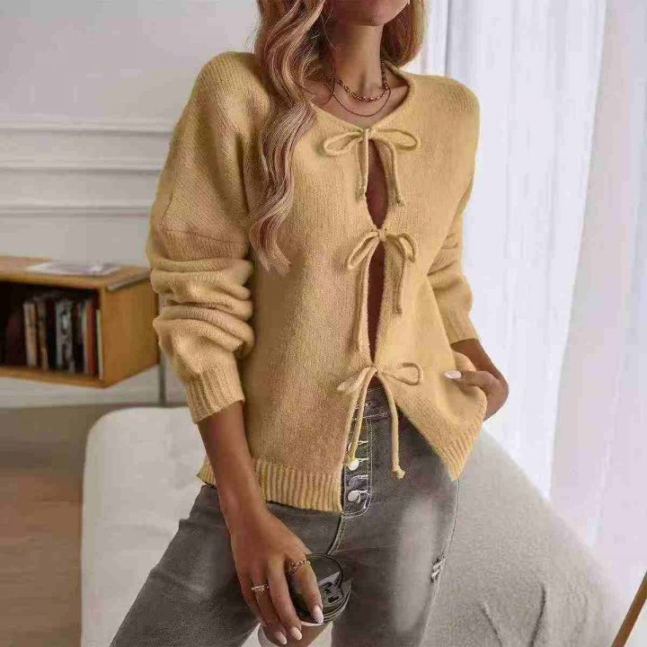 秋冬新款品牌外贸原单美式时尚百搭粗针加厚系带毛衣开...