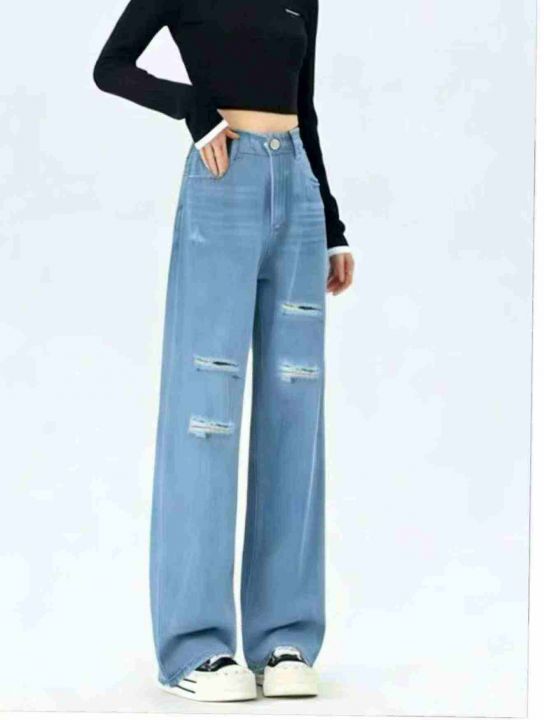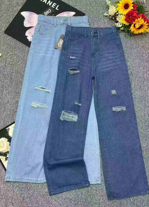 春夏季新款品牌原单宽松半松紧腰破洞设计款直筒阔腿牛仔裤,独立包装带吊牌,图片款,码数26--36码双码一首码,2366件,全清9.9元超低价秒杀!分货加一!