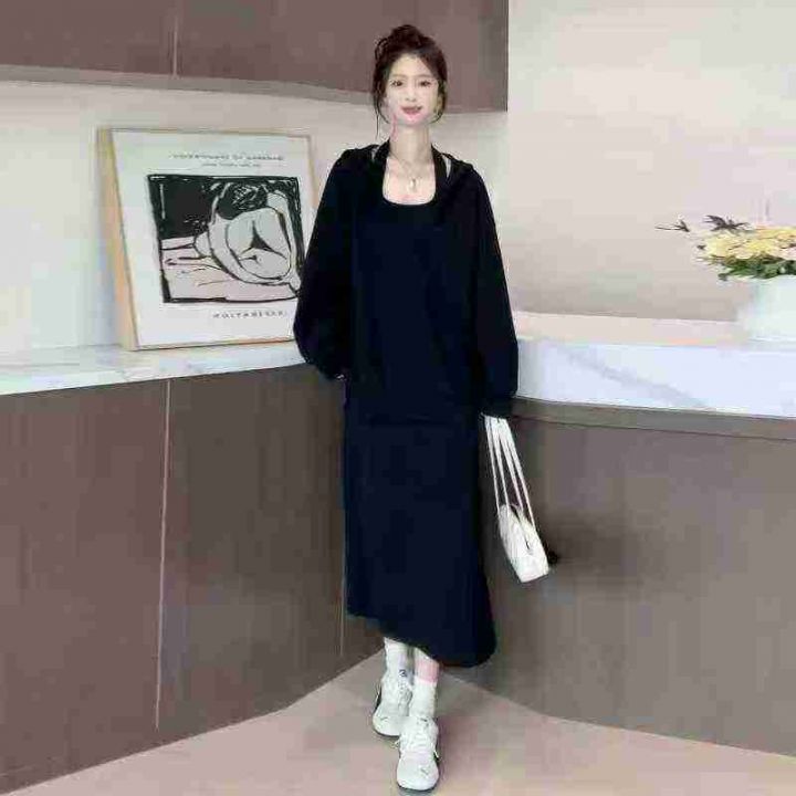 韩系慵懒风连衣裙套装102套11.8,面料柔软舒适,有垂感,挂脖吊带,下摆开...