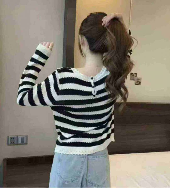 春秋新款撞色条纹时尚百搭宽松韩版针织毛衣套头毛衣,独立包装,均码面料柔软舒适,103件,全清6.9元超低价秒杀!