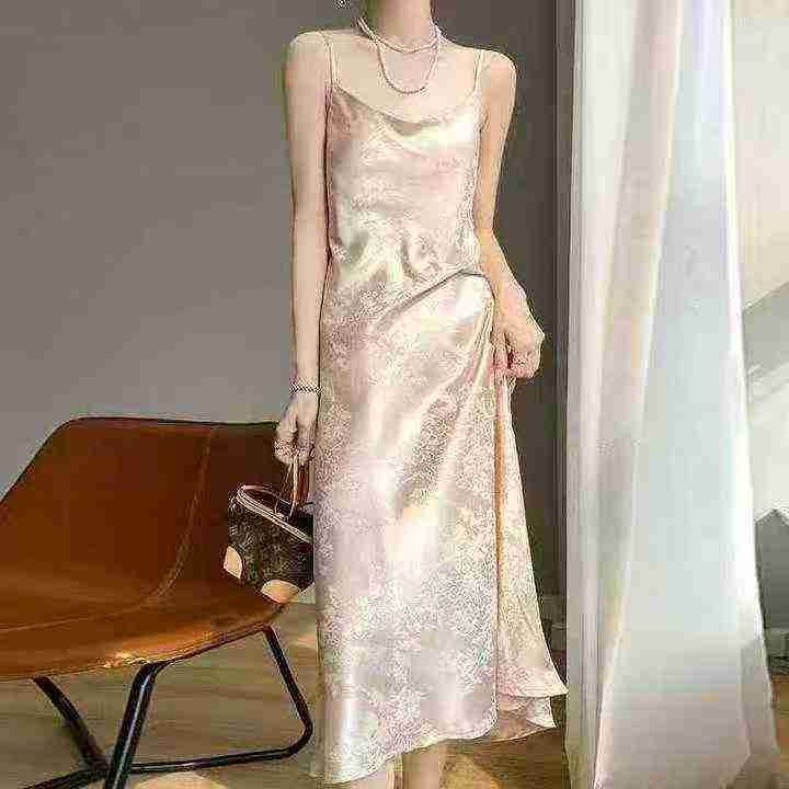 高级感气质提花连衣裙女夏季中长款法式浪漫吊带裙子,码数S-L,数量240件,独立包装,带胸垫,货品干净漂亮。