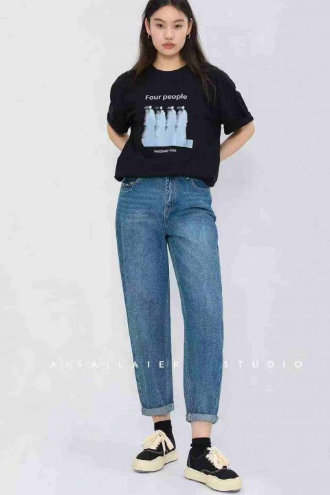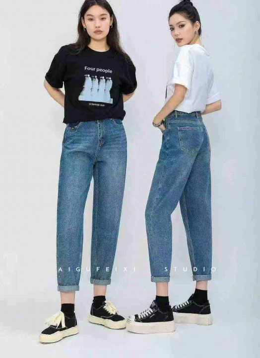 春秋新款高弹力洗水棉高品质女装牛仔老爹哈伦库,独立...