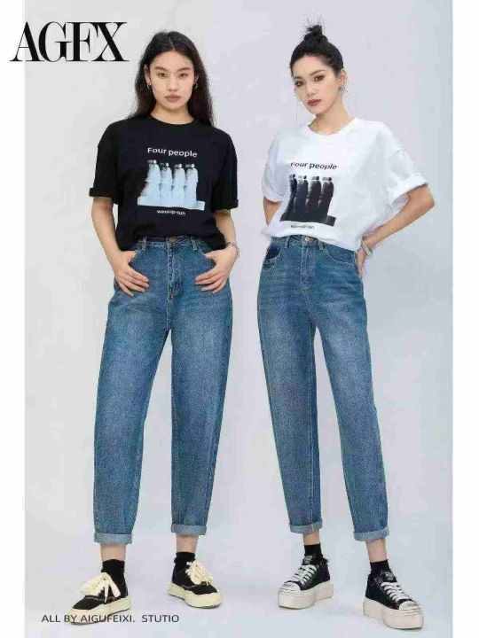 春秋新款高弹力洗水棉高品质女装牛仔老爹哈伦库,独立...