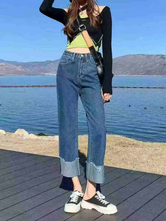 捡漏款,春夏季新款高腰直筒阔腿牛仔裤,独立包装带吊...