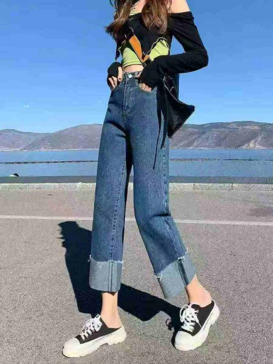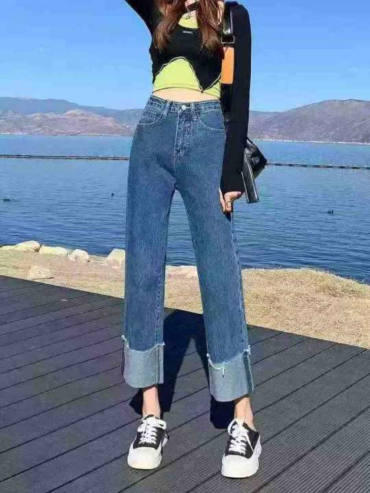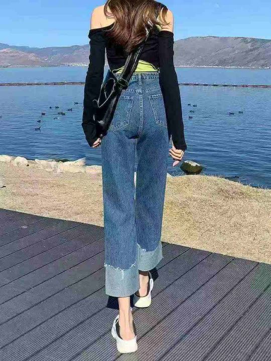 捡漏款,春夏季新款高腰直筒阔腿牛仔裤,独立包装带吊...