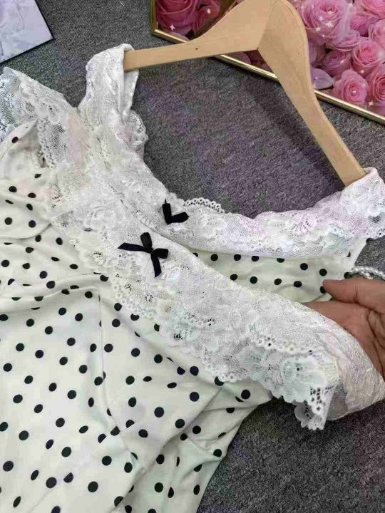 LookYiYi法式蕾丝花边波点吊带连衣裙女夏季甜美收腰修身A字短裙,整款2色,独立包装,货品干净,珠链包装里有部分配有的,有部没有珠链,另外赠送几十条珠项链,1到3码,310件,5.8清,分货加1