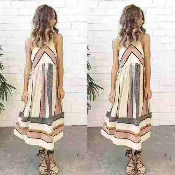 5.8元秒杀[發][發] 时尚印花沙滩休闲百搭中长裙无袖连衣裙,独立包装,码...