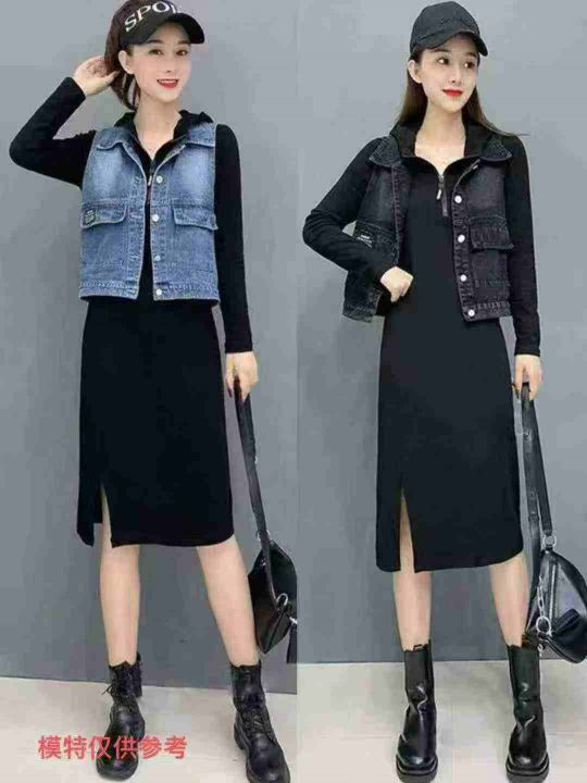 仿牛仔气质马甲套裤时尚马甲套连衣裙,独立包装,码数1-3码,数量147套 ,两整款,大货图四款为主,货号113#12