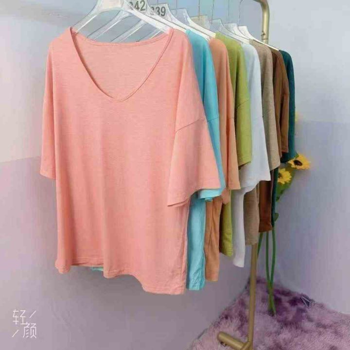 女装大码糖果色半圆V领T恤,莫代尔面料,码数MLXL,面料舒服柔软,货品干净,独立包装,100件左右,全清5.8。 货号:24862