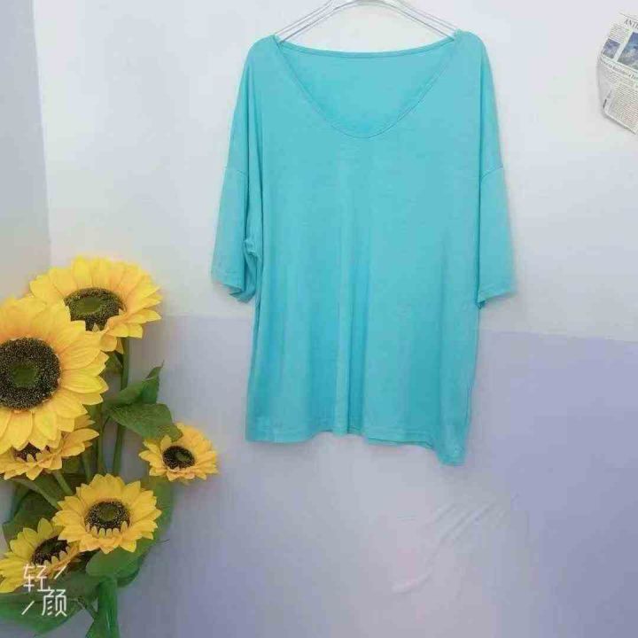 女装大码糖果色半圆V领T恤,莫代尔面料,码数MLXL,面...