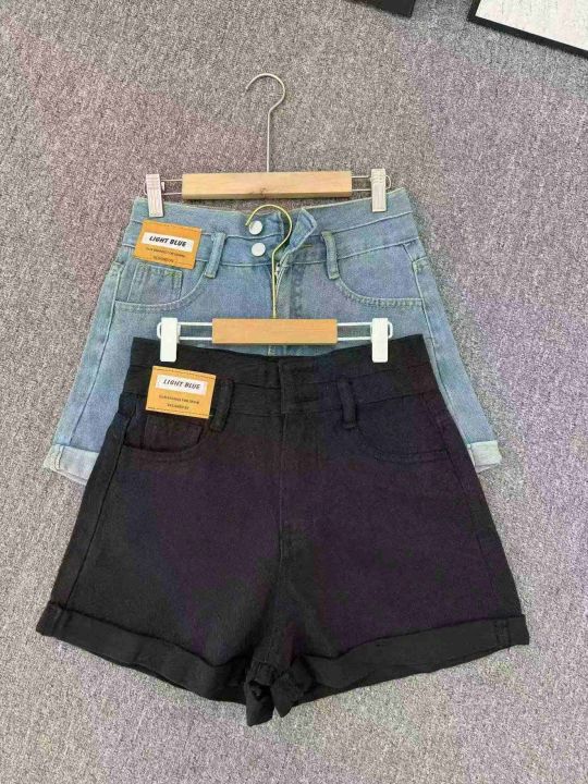 黑色双扣高腰卷边牛仔短裤女夏季新款宽松显瘦百搭阔腿热裤子,数量316,码数XS-XL,独立包装,货品干净,黑色为主。